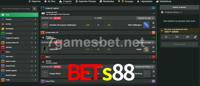O bets88 oferece uma grande seleção de opções de apostas em e-sports com probabilidades competitivas